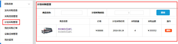 計(jì)劃采購作為平臺(tái)的一項(xiàng)創(chuàng)新采購服務(wù),可以通過選擇計(jì)劃采購的設(shè)備產(chǎn)品,采購商后臺(tái)可以查看到計(jì)劃采購清單,同時(shí)平臺(tái)會(huì)按照采購時(shí)間定期提醒,以求提醒采購商提前做好計(jì)劃采購任務(wù),以免遺漏和忘記。